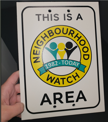 Neighbourhood Watch I am very happy to report that I now have the ‘lamppost signs’ that I will soon be putting up around the area, starting with the zones that were recently created.