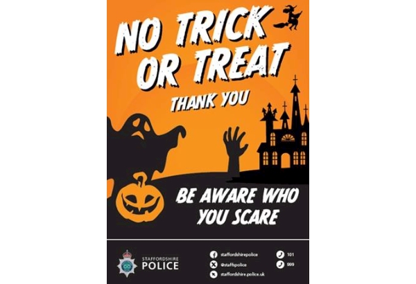 As Halloween approaches Staffordshire Police in Cannock would like to remind residents of a few simple tips to ensure everyone can enjoy the festivities safely and respectfully. Whether you are heading out trick-or treating, attending an even or staying home we all play apart in keeping our communities safe and welcoming for all.