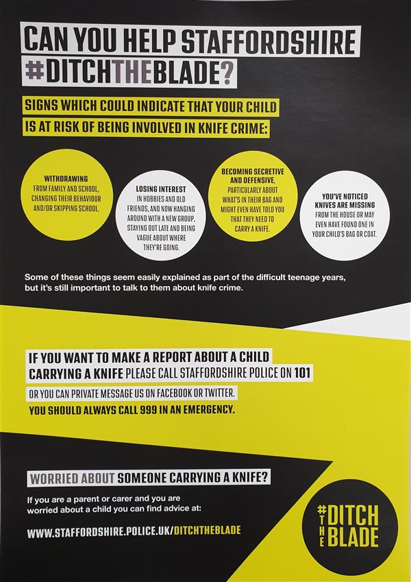 Please take a moment to read through the attached poster, if you have any concerns of a person who may be carrying a knife please contact 101 or 999 if an emergency.