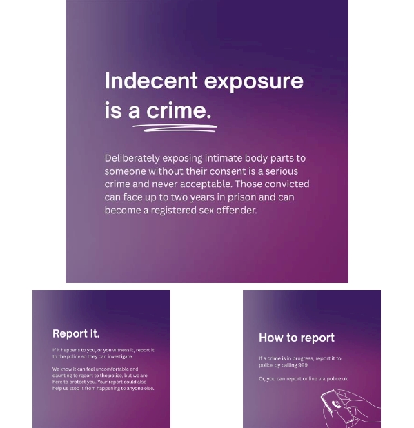 Indecent exposure is a criminal offence and it can be a warning sign of escalating behaviour. We take every report seriously.