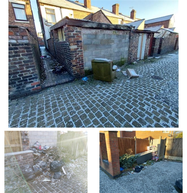 Should anyone see anyone fly tipping in the area please report this to the council on there website. Or see any rubbish in alleyways, please report this to the council.