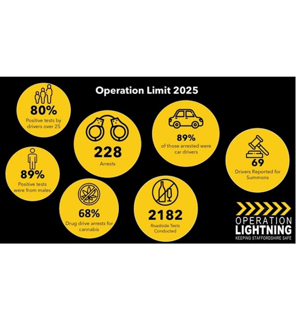 A total of 228 drivers have been arrested for drink or drug driving across Staffordshire in a proactive crackdown aimed at saving lives on the county’s roads.