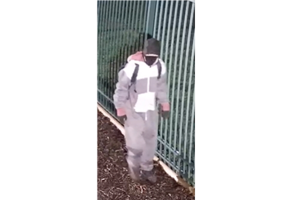 The offender is believed to have been on a bicycle. They were wearing a black facial covering a grey and red onesie.