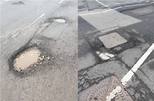 I am not sure if anyone has reported these, but I made reports to 'Highways' about a large pothole on Brough Ln (junction with Kennedy Rd) and one on New Inn Lane (junction with Trentley Rd). I made this report by visiting www.stoke.gov.uk. Reports to the Council can also be made by calling 01782 234 234.