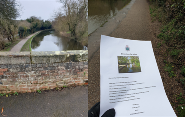 I have drafted up a poster (see above picture) to hand out to cyclists, to which I took advantage of the great weather we had on 14/02/26, and was able to commence what will be a long-term term initiative. I stopped and spoke to cyclists and handed out the posters, passing on advice. I've also emailed the Canal and River Trust, asking for the possibility of more signage encouraging slower cycling. The Canal and River Trust have plenty of advice for those cycling along the tow paths, including a campaign called ‘Stay Kind Slow Down’ which can be found by visiting Stay kind and slow down | Canal & River Trust