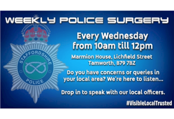 On Wednesday 15th April 2026 between 10:00 to 12:00, local PCSOs will be in Marmion House Reception Area.